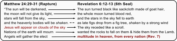 Thus, if the rapture in Matthew 24 matches the 6th Seal, it can’t possibly be the